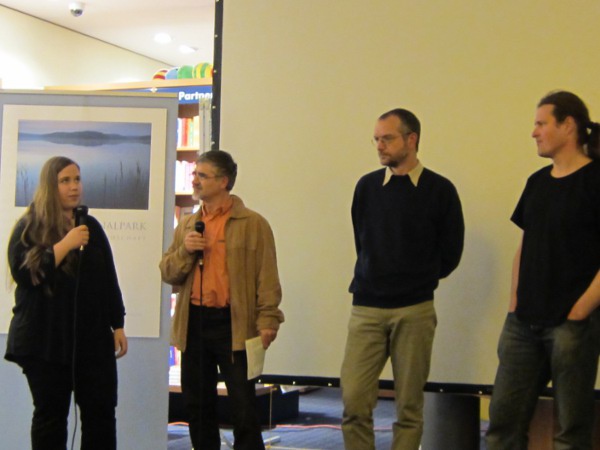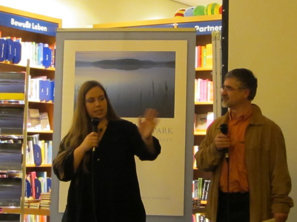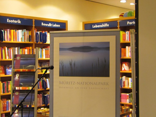 Thalia Neubrandenburg: Buchpräsentation und Multivisions-Show Ca. 120 Gäste folgten der Einladung in die Thalia Filiale im Markplatz-Center Neubrandenburg zur Präsentation des Anfang Juli im Verlag erschienenen Buches „Müritz-Nationalpark – Hommage an eine Landschaft“ (Sandra Bartocha, Peter Wernicke). Die emotionale Einstimmung in den Abend gab es mit der Multivisionsshow „Farbklang Wildnis – Impressionen aus dem Müritz-Nationalpark“ (Sandra Bartocha, Musik: Torsten Harder), die als Auftragsarbeit entstand und die auf der Festveranstaltung „20 Jahre Müritz-Nationalpark“ am 02. Oktober uraufgeführt wurde.Während einer kurzweiligen Podiumsdiskussion, moderiert von Matthias Wolf (Chefdramaturg, Theater und Orchester GmbH Neubrandenburg/ Neustrelitz) berichteten die Autoren über die mehrjährige Projektarbeit für dieses Buch, wie auch Sandra Bartocha und Torsten Harder über Hintergründe zur Entstehung von „Farbklang Wildnis“ berichteten. Insgesamt ein gelungener Abend, der bei guten Gesprächen, Prosecco und einem Stapel verkaufter Bücher dann erst spät zu Ende ging. Für mehr Informationen klicken Sie bitte auf das Bild. |