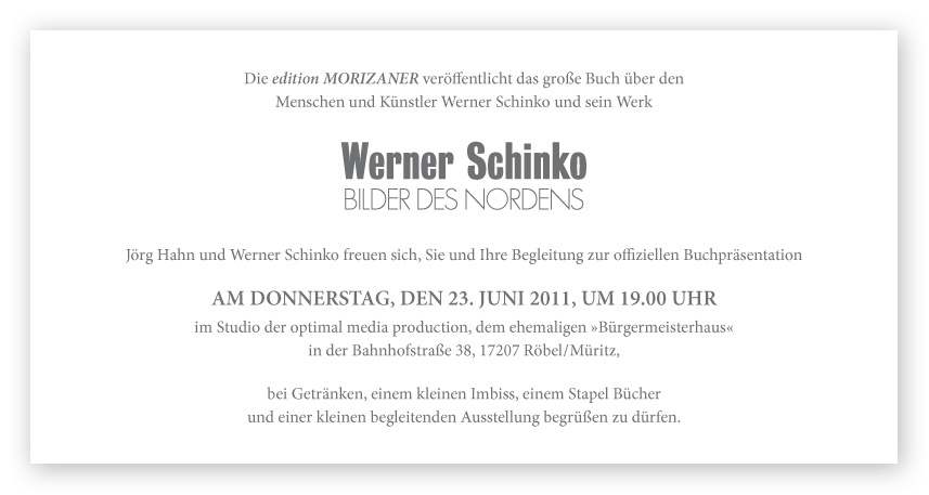 Einladung zur Buchpräsentation „Werner Schinko - Bilder des Nordens“ Geschafft! Ab dem 24.Juni wird das Buch „Werner Schinko- Bilder des Nordens“ publiziert und im Handel erhältlich sein.