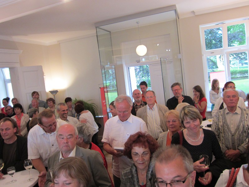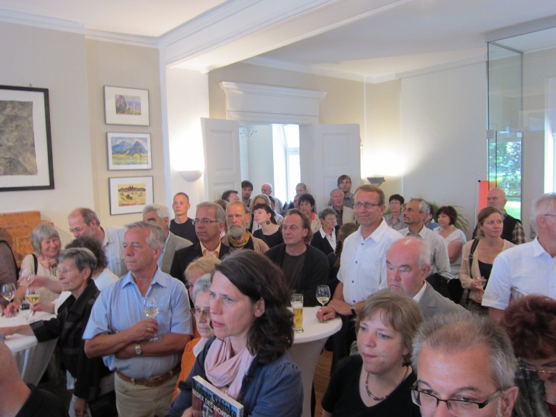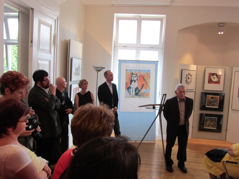 Bei kühlen Getränke (es war ein warmer Sommertag), einem kleinen Imbiss, einem Stapel Bücher und einer begleitenden Schinko-Ausstellung wurde vorgestellt, laudatiert und viel über den Künstler und sein Werk geredet. Es gab gute Gespräche, es wurden Bücher gekauft, von Werner Schinko signiert und ein gut gelauntes Publikum verließ spät Abends den Ort des Geschehens im ehemaligen "Bürgermeisterhaus", den heutigen Studioräumen der Firma optimal media production.